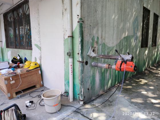 工作人員現場抽芯、鋼筋測量圖