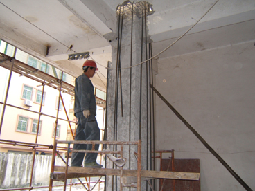 廣(guang)州(zhou)民(min)主(zhu)大(da)樓(lou)位(wei)於(yu)廣(guang)州(zhou)大(da)道(dao)中(zhong),是(shi)一(yi)幢(zhuang)框(kuang)架(jia)高(gao)層(ceng)結(jie)構(gou),由(you)於(yu)業(ye)主(zhu)需(xu)要(yao)在(zai)二(er)樓(lou)的(de)一(yi)個(ge)房(fang)間(jian)做(zuo)密(mi)集(ji)櫃(gui),增(zeng)加(jia)的(de)荷(he)載(zai)超(chao)過(guo)了(le)原(yuan)來(lai)的(de)設(she)計(ji)值(zhi),為(wei)了(le)該(gai)房(fang)屋(wu)的(de)安(an)全(quan)可(ke)靠(kao)性(xing),我(wo)司(si)對(dui)該(gai)位(wei)置(zhi)做(zuo)局(ju)部(bu)的(de)加(jia)固(gu)處(chu)理(li)。主(zhu)要(yao)是(shi)在(zai)密(mi)集(ji)櫃(gui)下(xia)麵(mian)增(zeng)加(jia)反(fan)梁(liang)的(de)加(jia)固(gu)方(fang)案(an)。